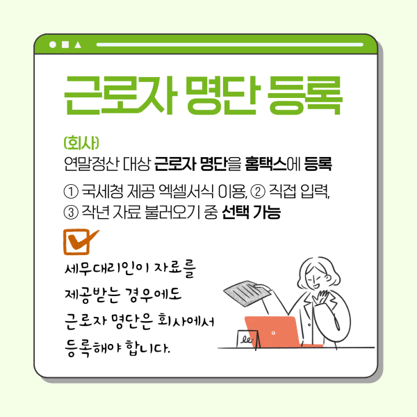회사도, 근로자도 더 편해지는 '연말정산 간소화자료 일괄제공 서비스' 이용하세요.