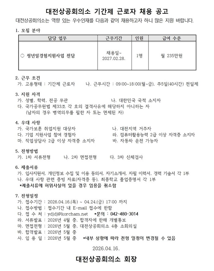 | 제목 | 대전상공회의소 기간제 근로자 채용 공고 | ||