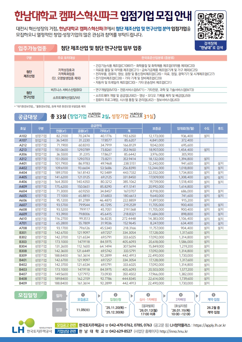 | ‒ | [한국토지주택공사] 한남대학교 캠퍼스혁신파크 입점기업 모집 안내 |