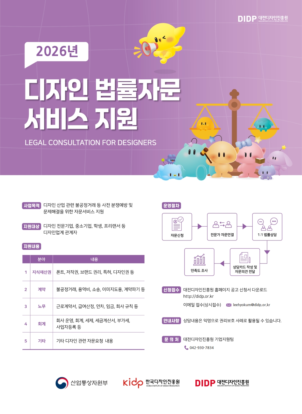 | 제목 | [대전디자인진흥원] 2026년 디자인법률자문단 운영 안내 | ||