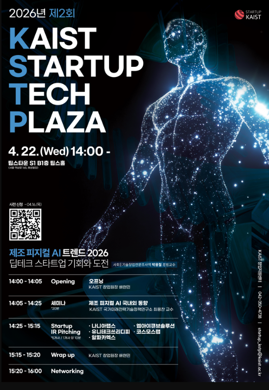 | ‒ | [카이스트]「2026년 제2회 KAIST STARTUP TECH PLAZA 개최 안내(4/22 개최) |